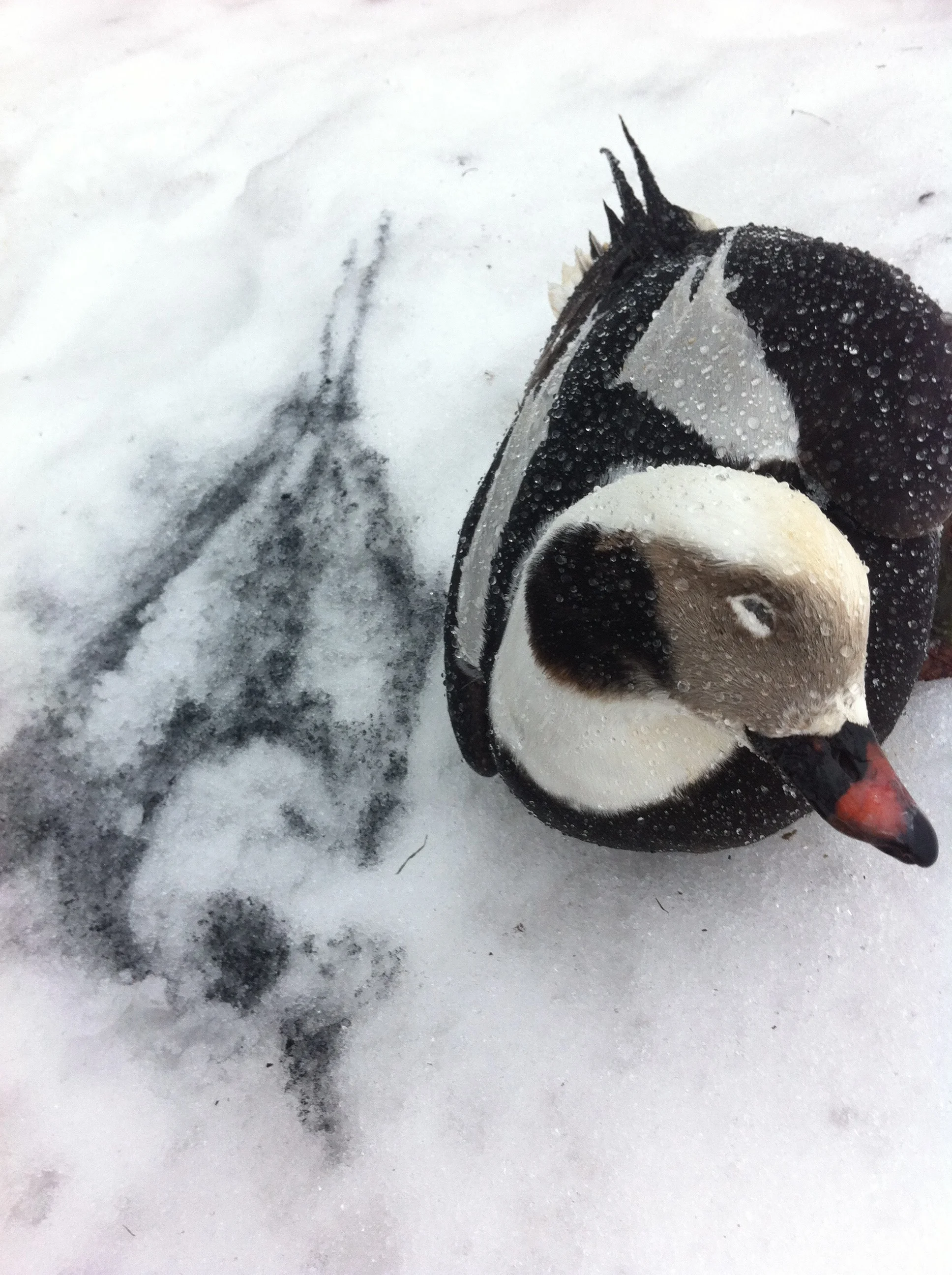Lake Ontario shore, dead long-tailed duck, birch charcoal. Ontario, winter, 2014. (scroll down for image details)